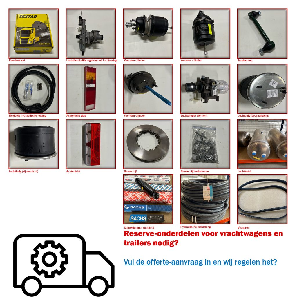 Ik koop en verkoop reserve-onderdelen voor verschillende merken vrachtauto’s en trailers van de merken DAF, IVECO en MAN voor het doel waar u het voor nodig heeft. Klik hier onder op het product naar keuze en vraag een offerte aan door te klikken op de knop ‘Vraag direct een offerte aan voor dit product‘.